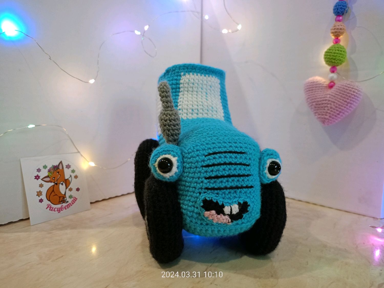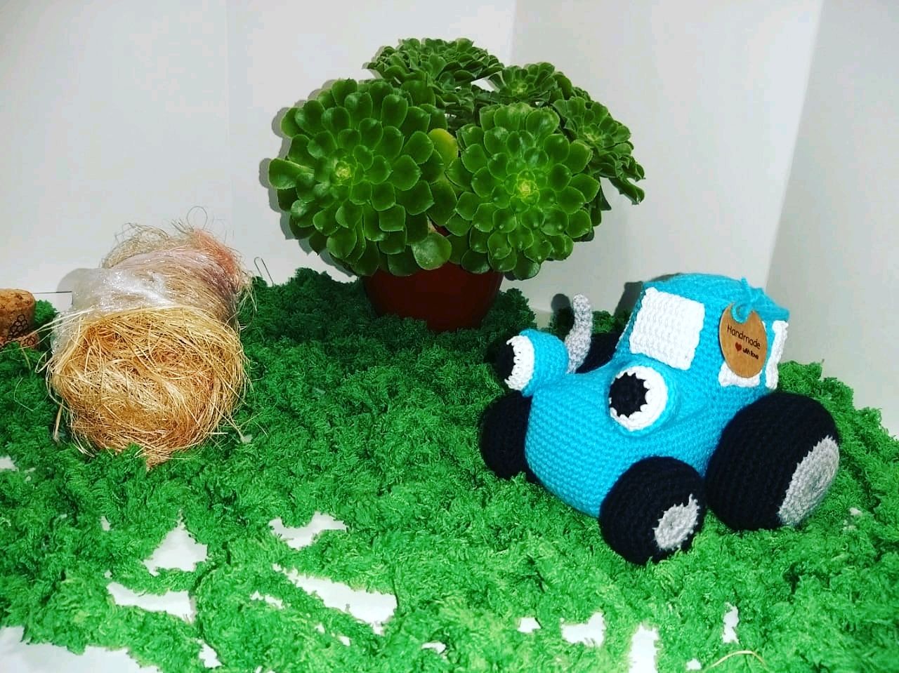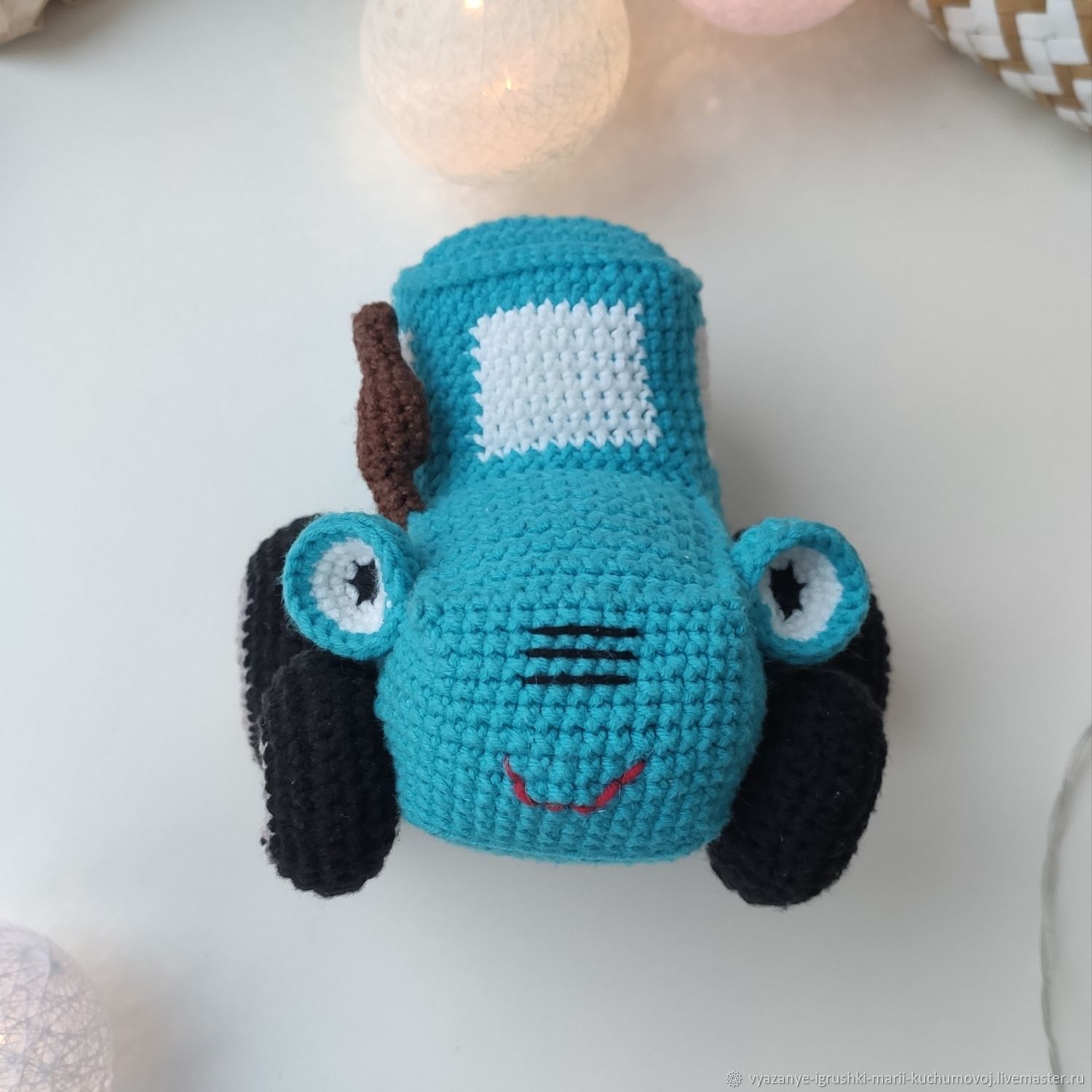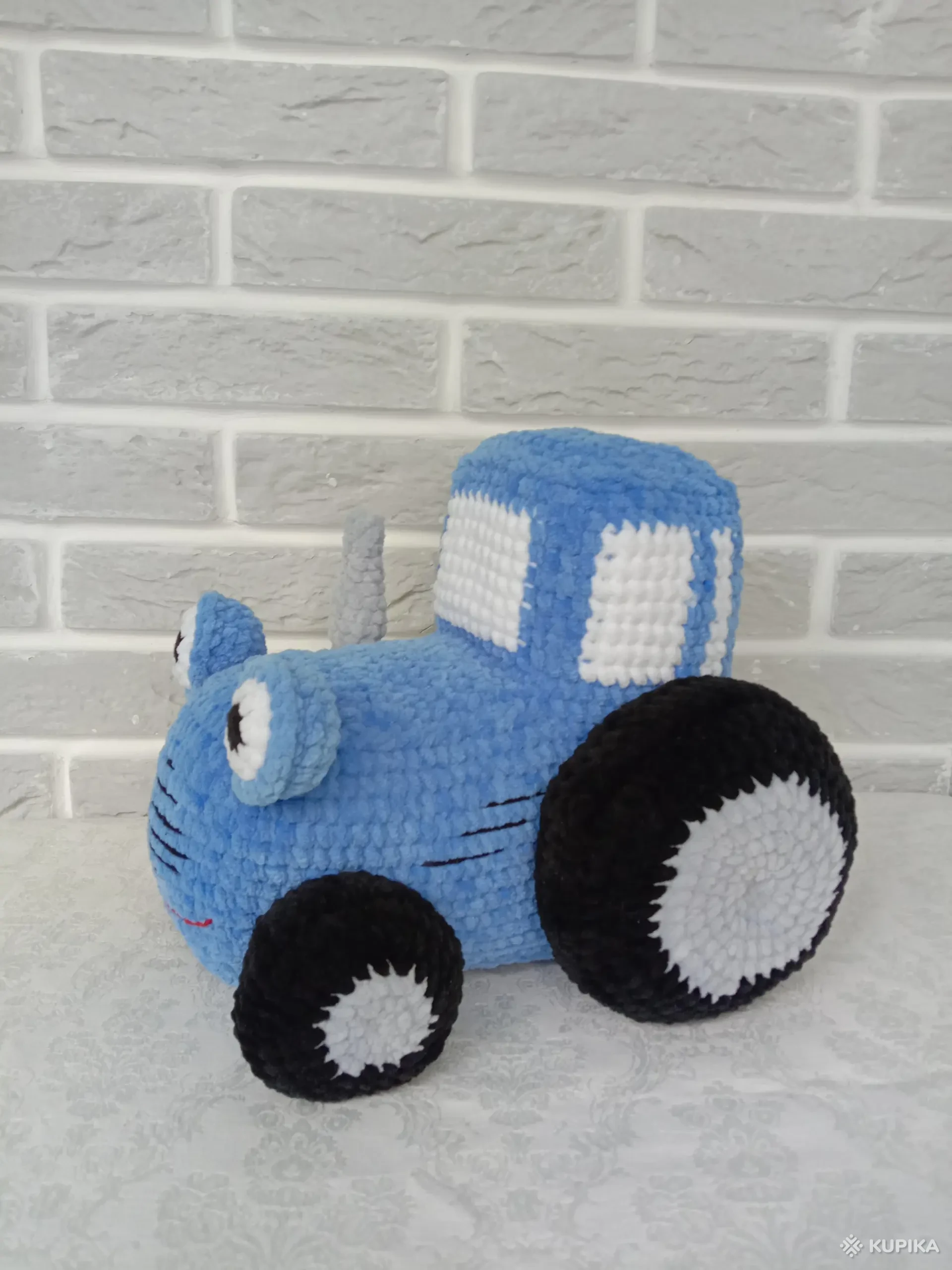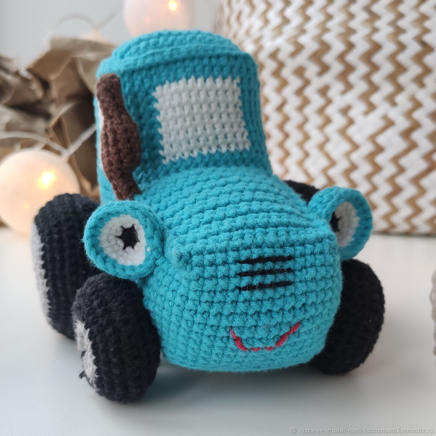 Вязаный синий трактор
