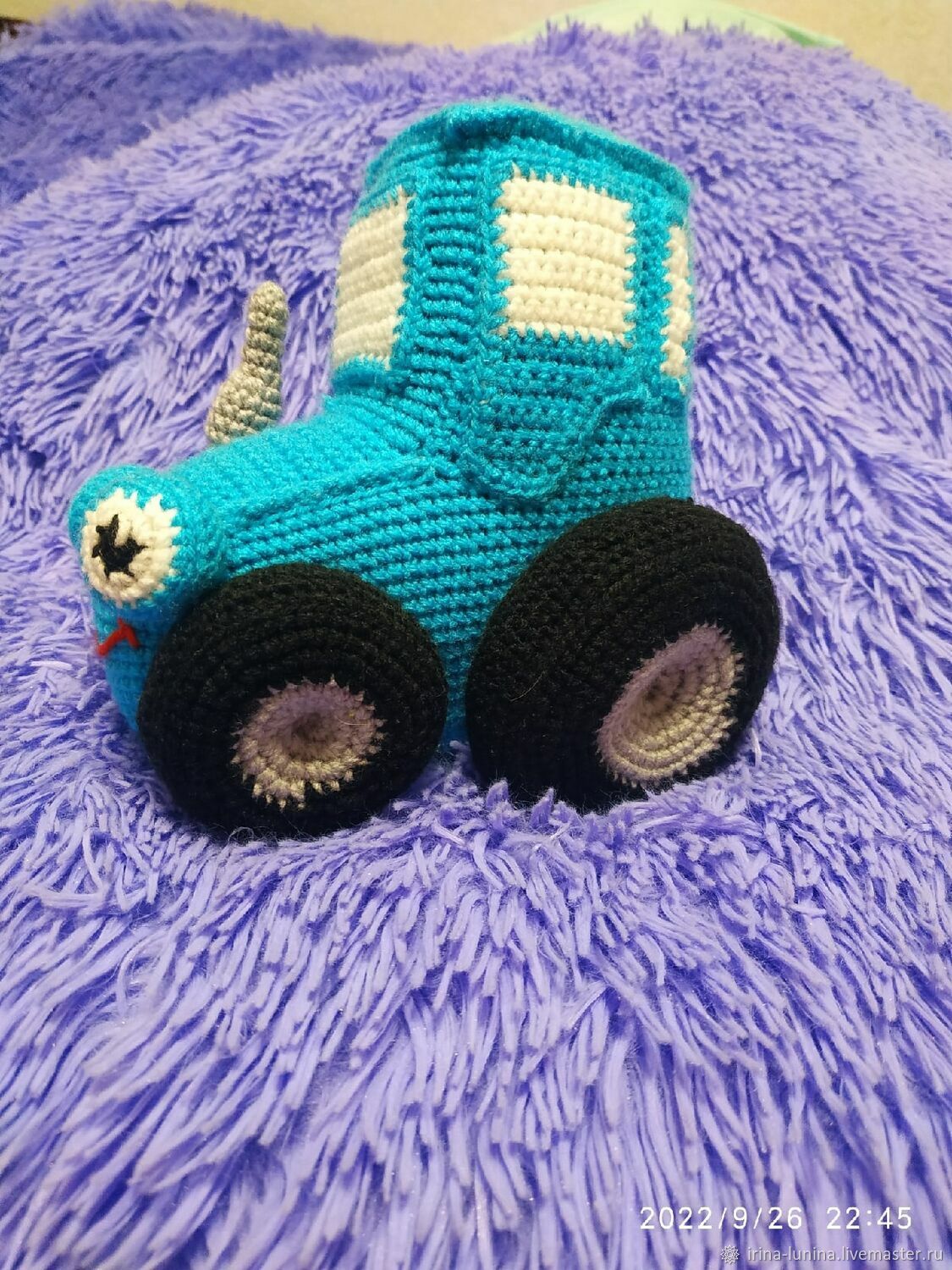 Вязаный синий трактор 137 фото