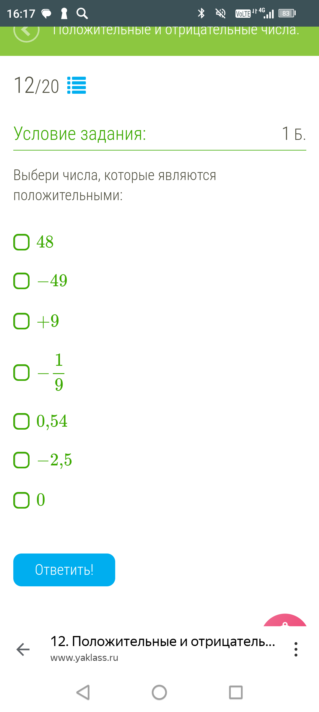 Выбери число 0 36