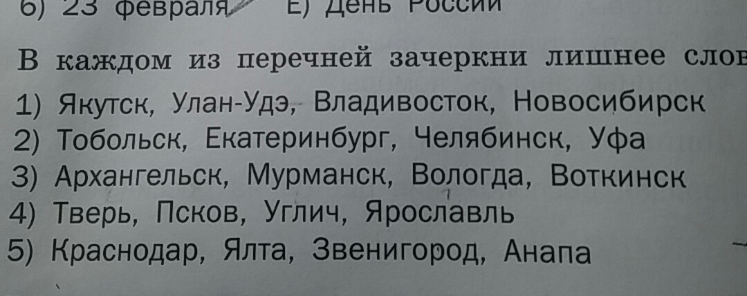 Выбери из списка лишнее