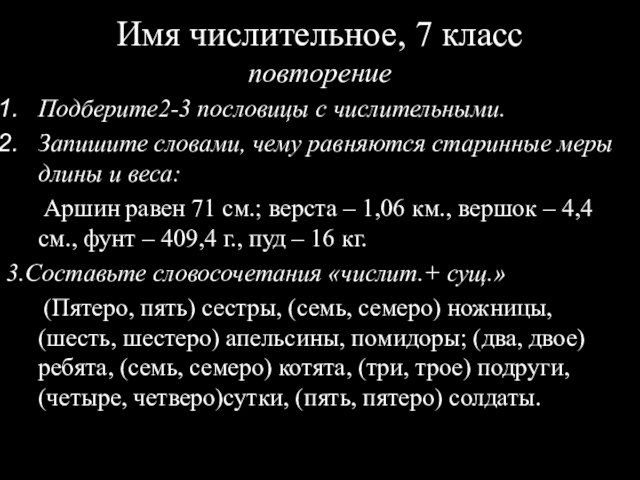 Выберите одно числительное
