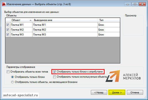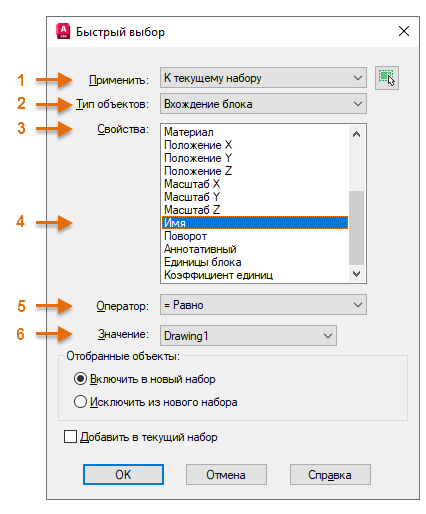 Выбор блоков в автокаде