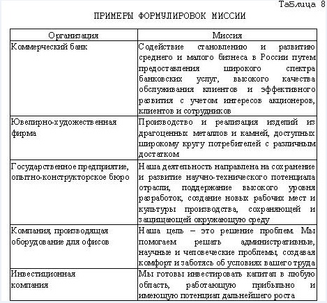 Выбор миссии предприятия представление о собственной