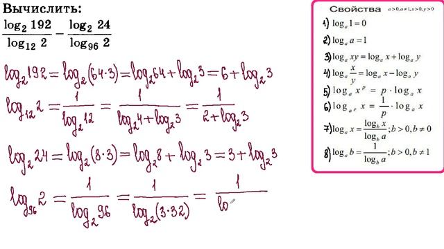 Вычислить логарифмическое выражение