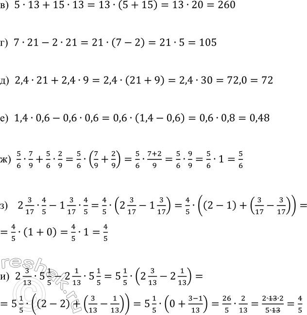 Вычислите применяя распределительное свойство