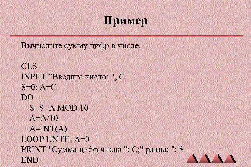 Вычислите сумму всех цифр числа