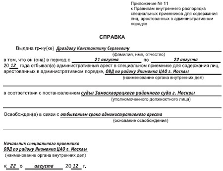 Выдачи административных справок