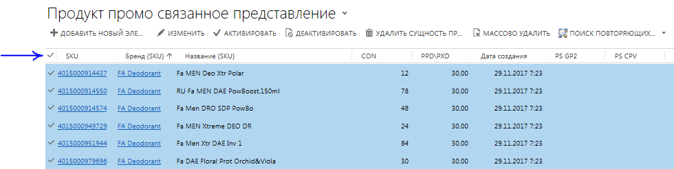 Чтобы выделить все записи, достаточно нажать на галочку в левом верхнем углу заголовков столбцов.