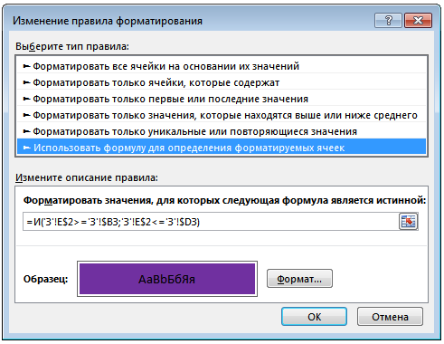 Выделить ячейки правилом