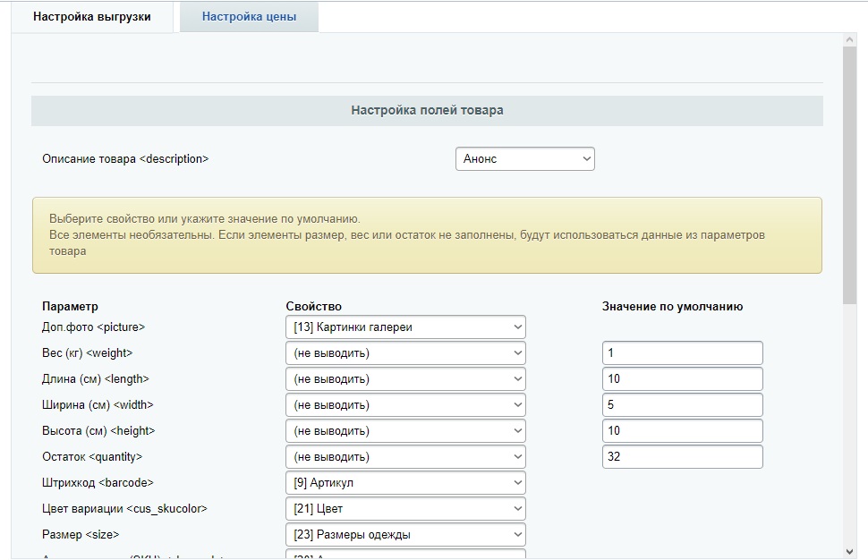 Выгрузить товары с сайта