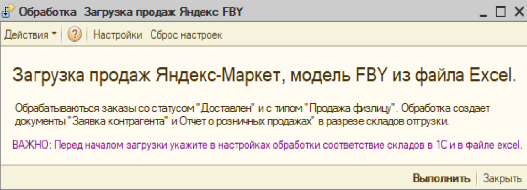 Выгрузка не предусмотрена