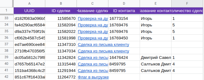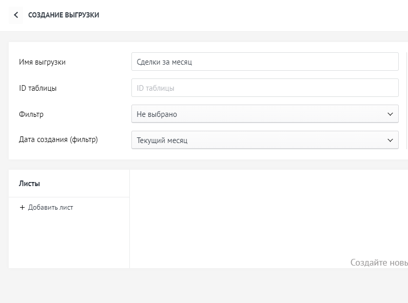 Выгрузка сделок