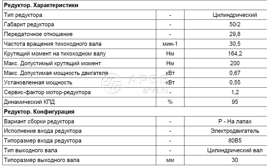 Выходная мощность редуктора
