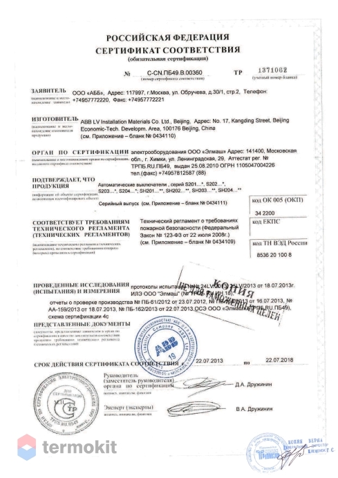 Выключатель 16а сертификат