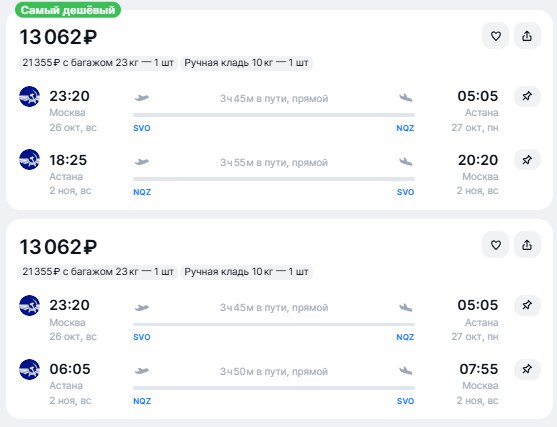 Вылет астана москва