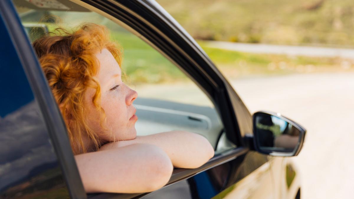 Вылезла из окна машины