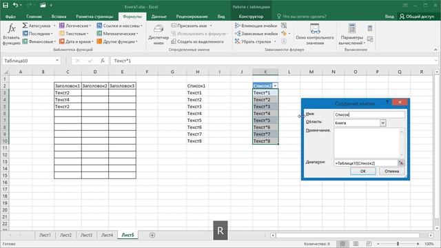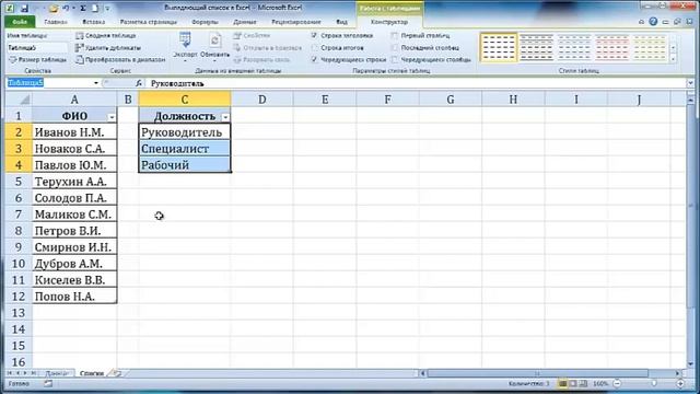 Выпадающее окно в экселе