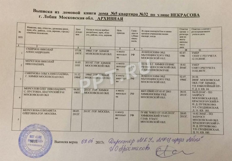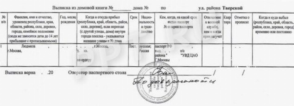 Выписка из домой книги