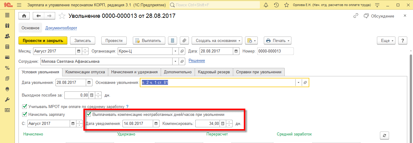 Выплата компенсации в первые