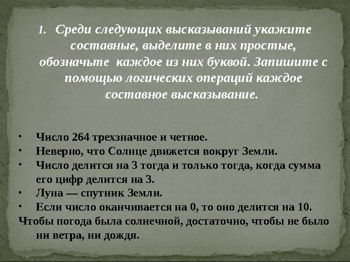 Выполните классификацию следующих высказываний aub