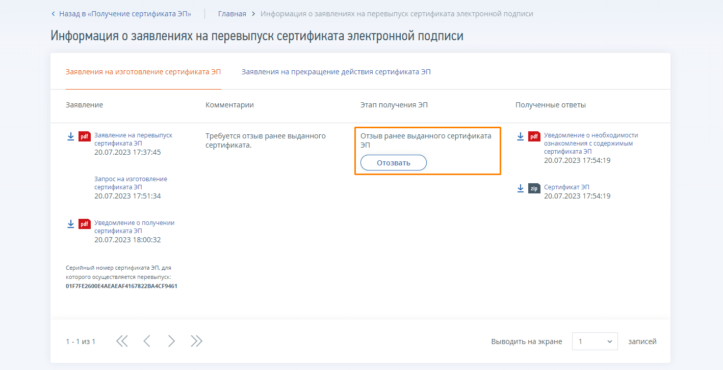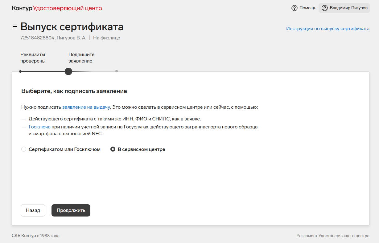 Выпустить сертификат фнс