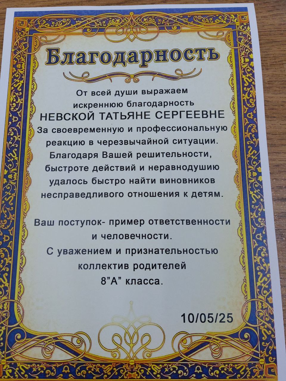 Выражаем благодарность в лице