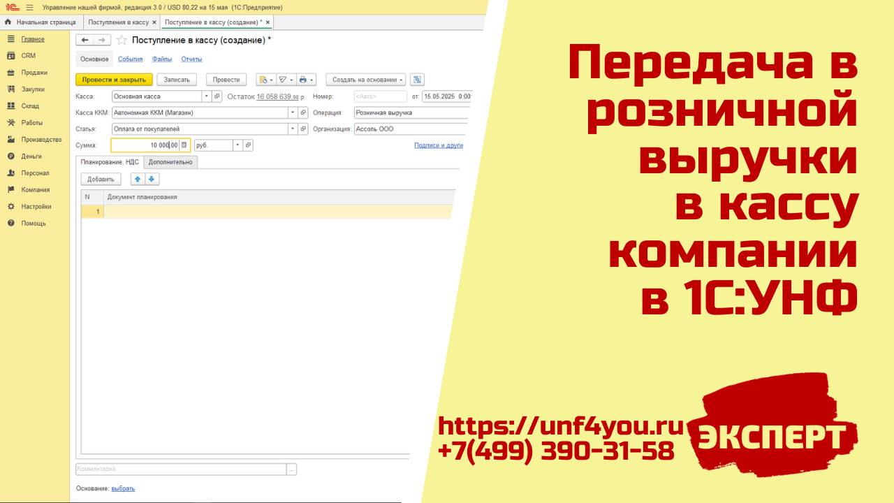 Выручка в банк 1с