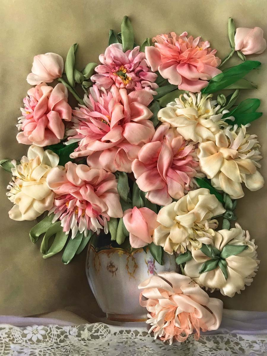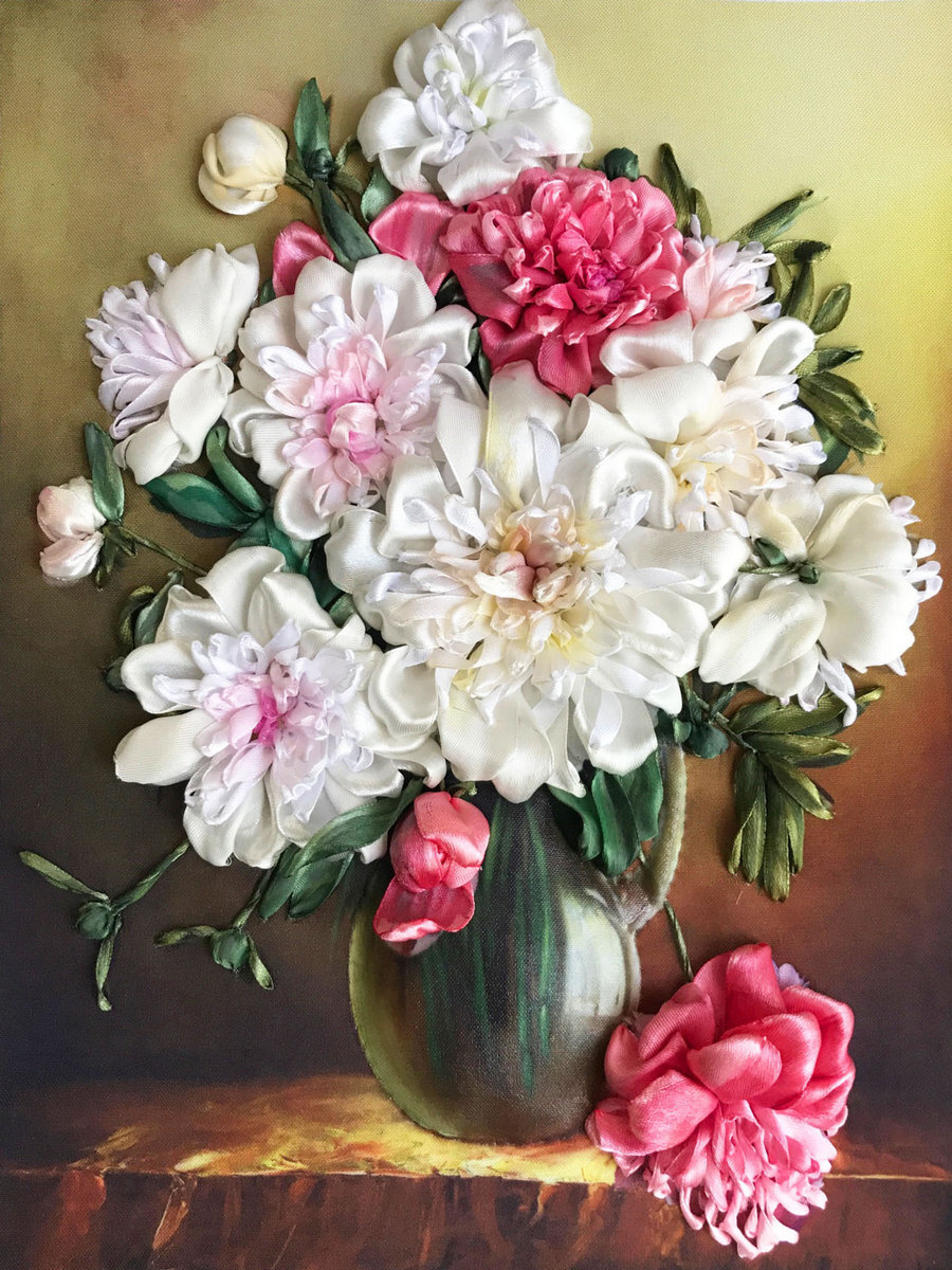 Вышивка лентами пионы в пошаговом фото мастер-классе