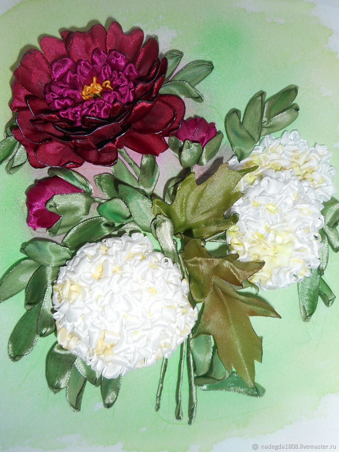 Пионы вышитые лентами - МК по хэндмэйду со схемами и . . .
