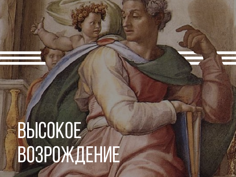 Третий этап Ренессанса — Высокое Возрождение — апогей эпохи, длившийся примерно 27 лет (1500-1527). Культурный центр переехал из Флоренции в Рим. Почему? Потому что на Папский престол сел Юлий II — честолюбивый и бодрый чувак, показывавший на своём примере как нужно любить искусство. При Юлии уровень культуры максимально близко подкрался к заветным идеалам античности, а Рим стал аналогом древних Афин. Живопись, скульптура и архитектура гиперактивно развивались, и, как старые кенты, шли рука об руку, по-дружески похлопывая друг друга по жопе.