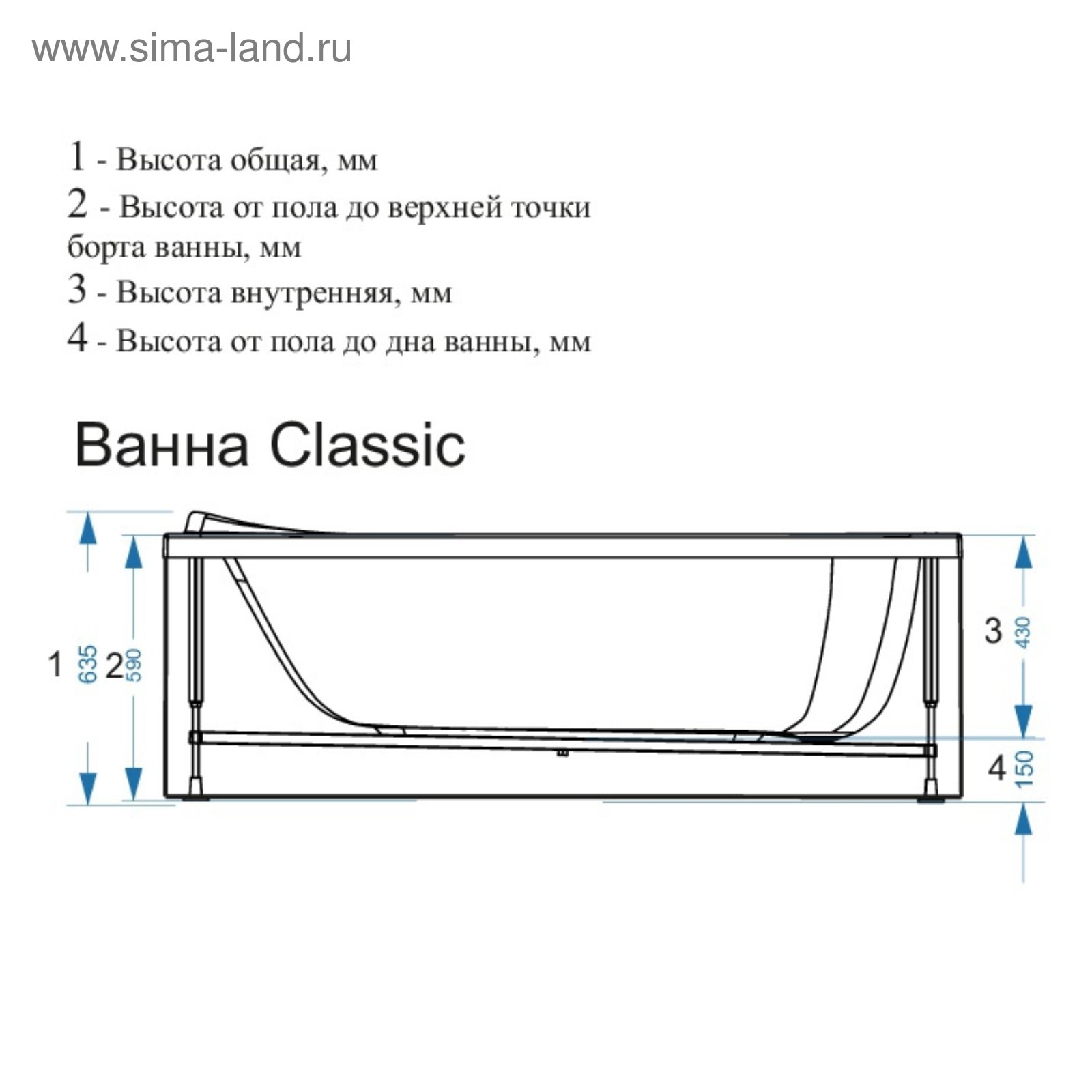 Высота борта ванны