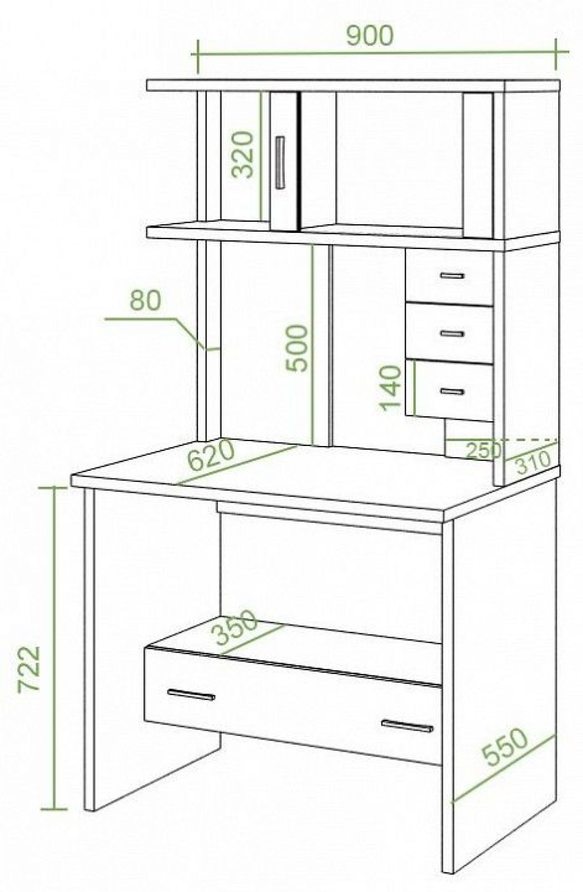 Высота полок от стола