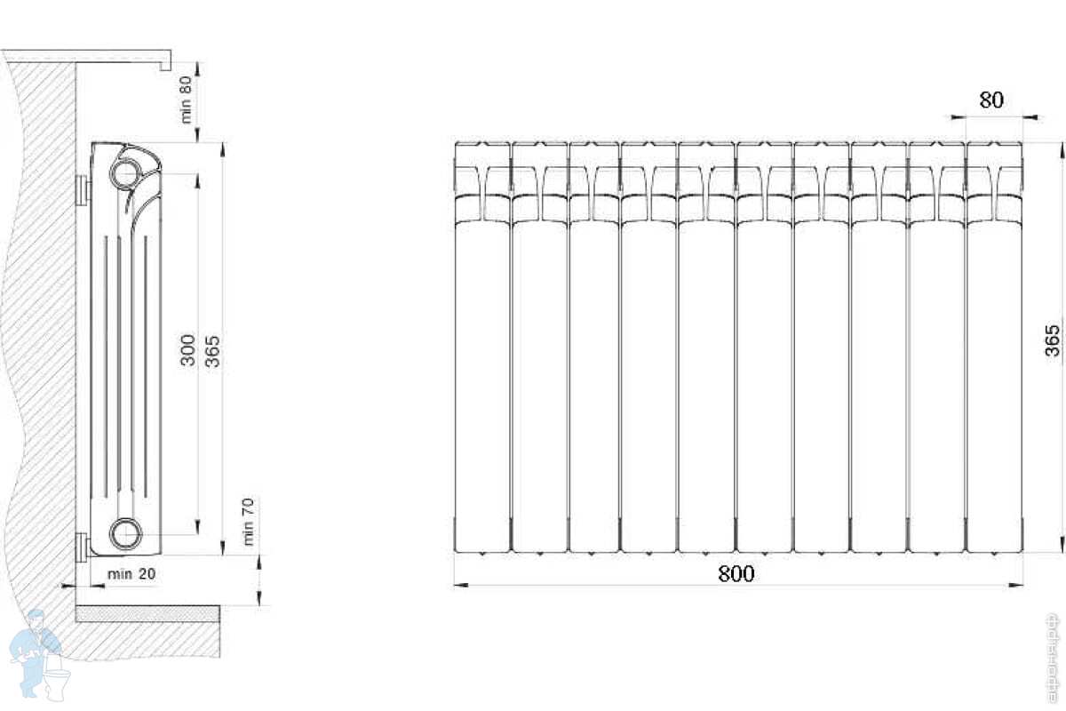 Высота радиатора рифар