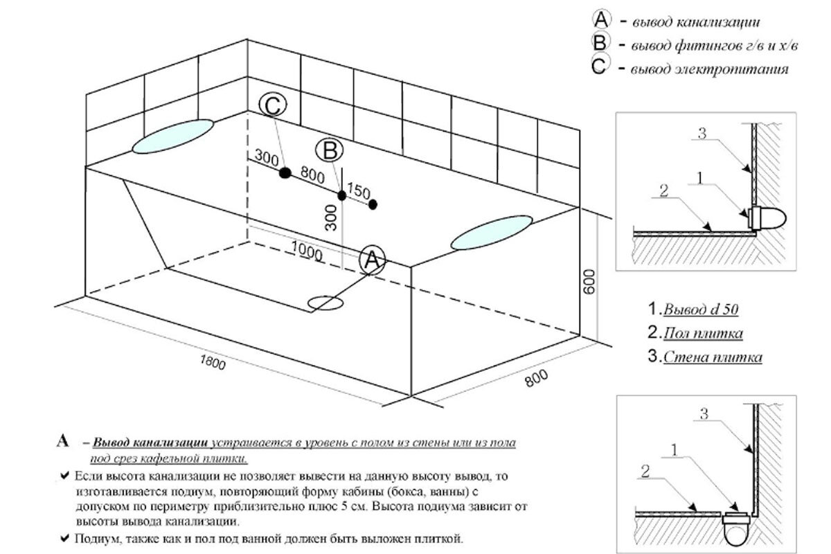 Высота труб для ванны