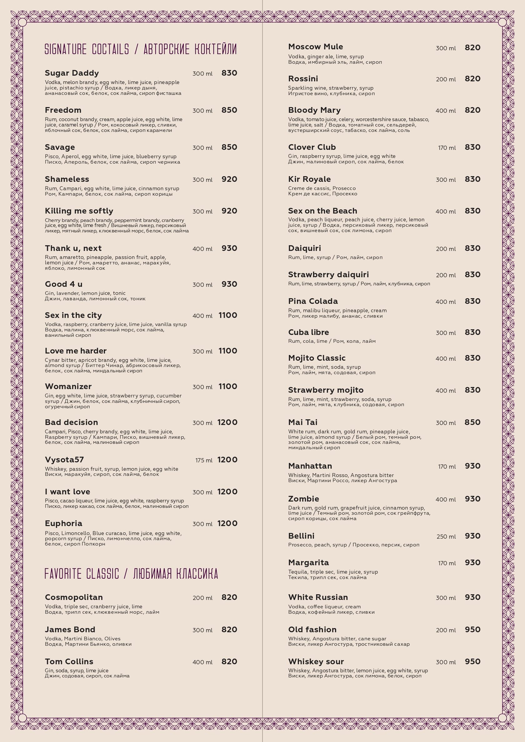 Высота уфа ресторан меню
