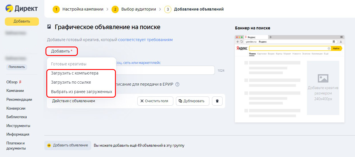 Выставить рекламу