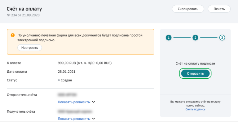 Выставить счет сайт
