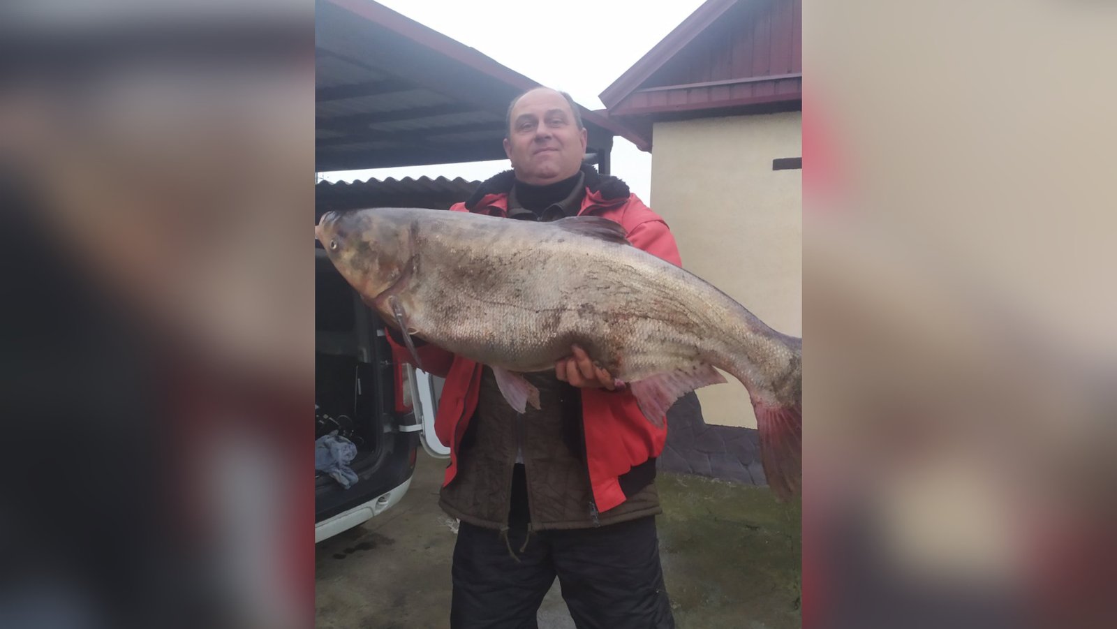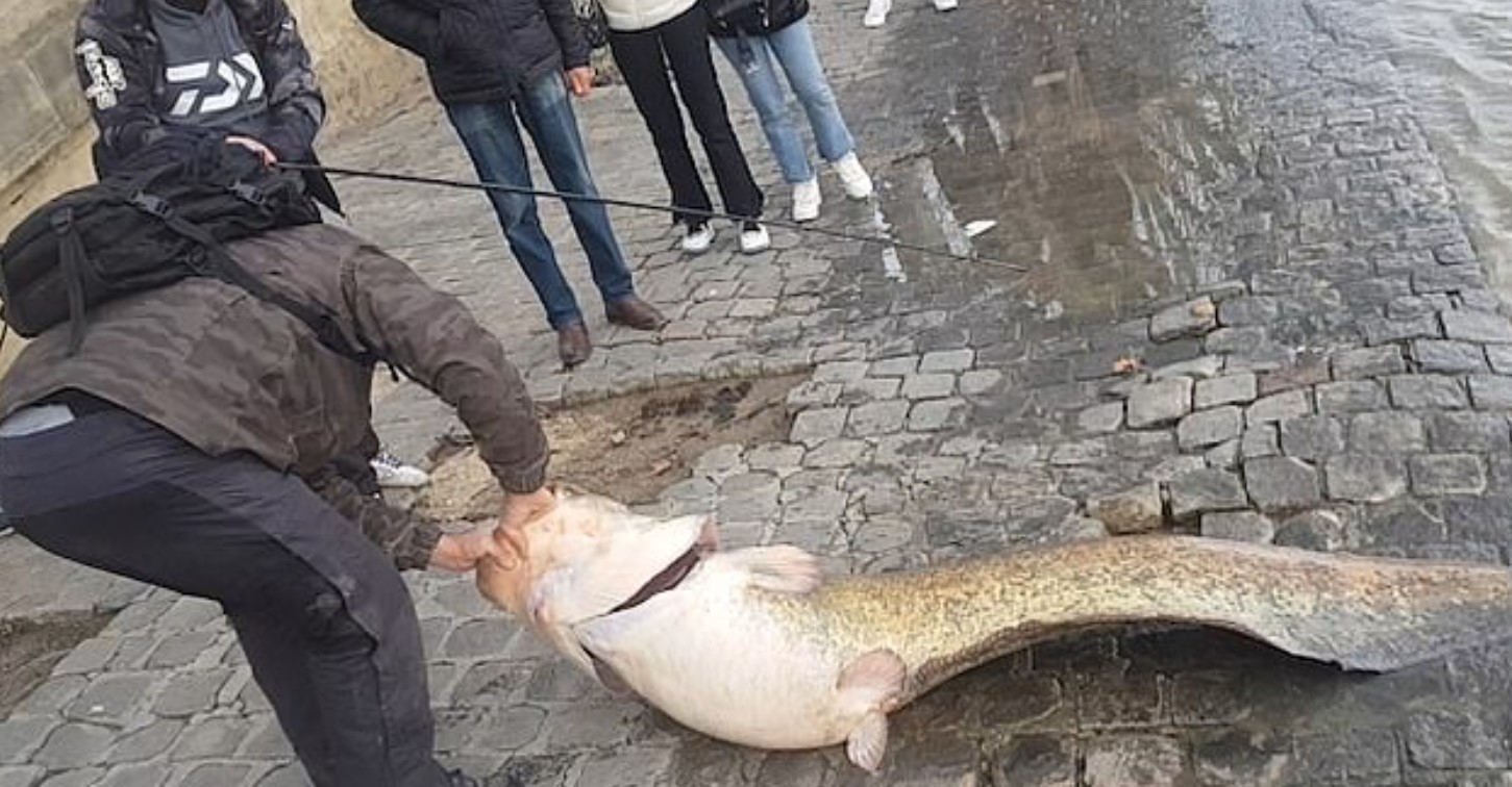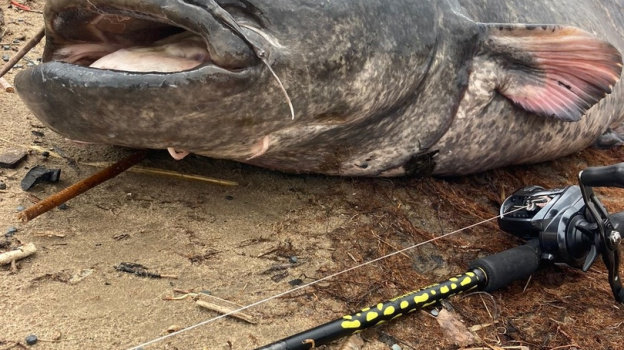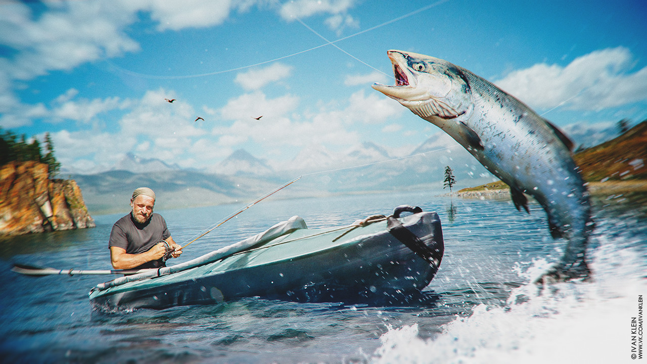 Вытаскивает огромную рыбу
