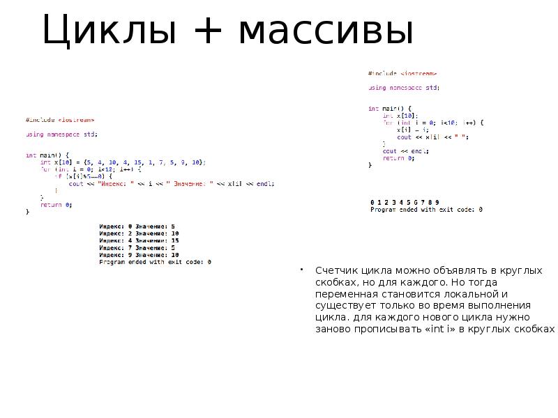 Вывести массив в цикле с