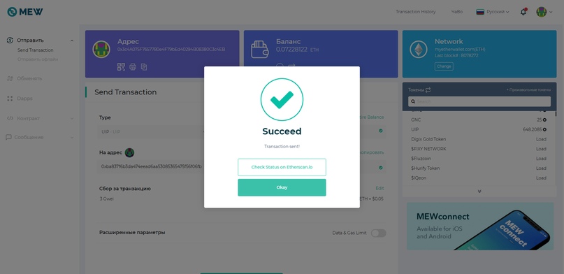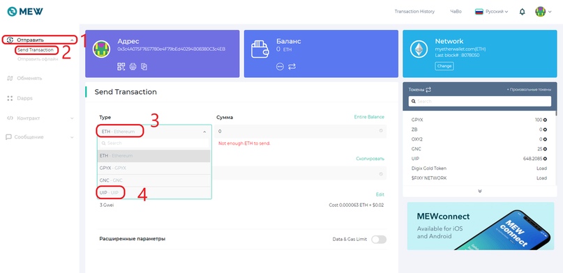 4) Захожу в MEW: