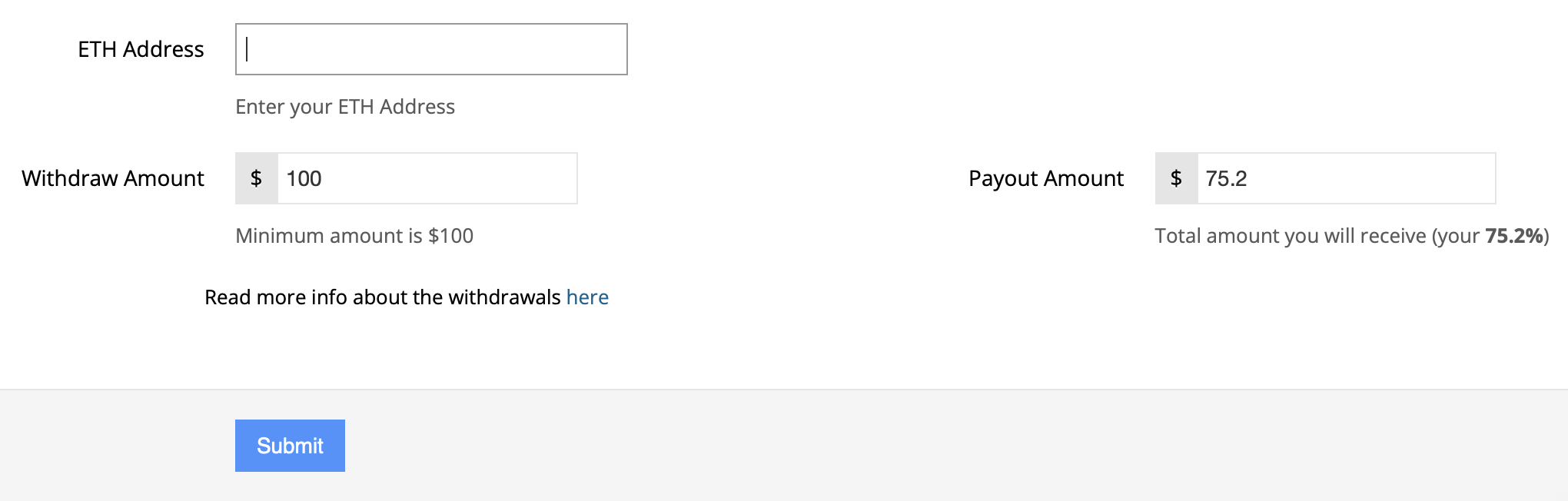 - ETH - $100;