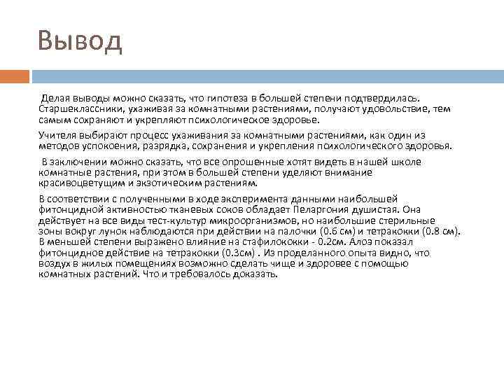 Вывод о том что за