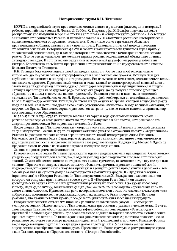 Взгляды татищева