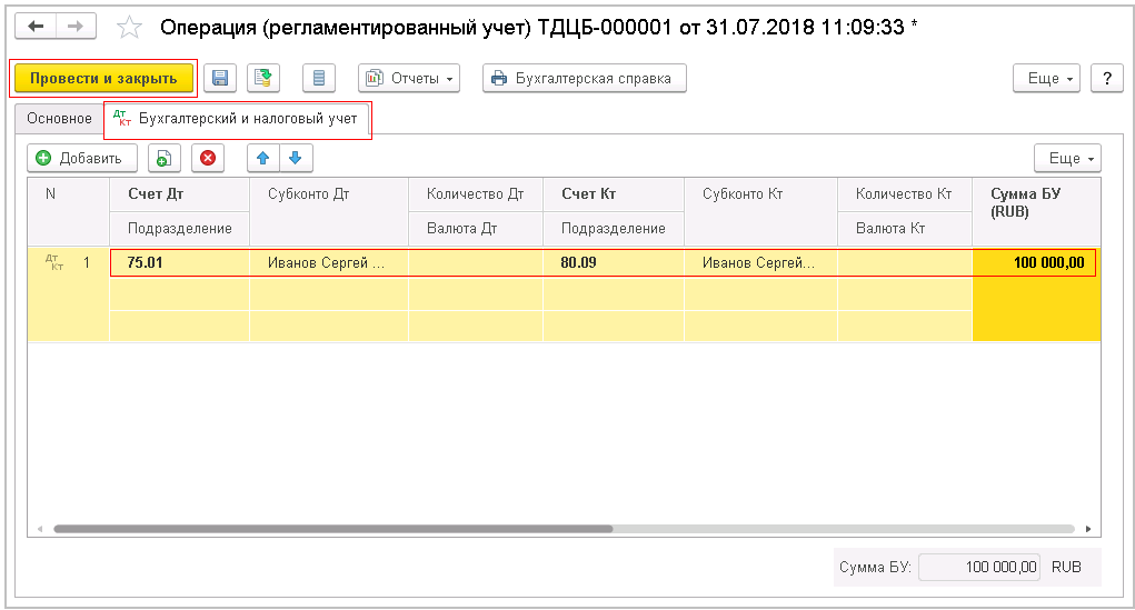 Взнос в имущество проводки