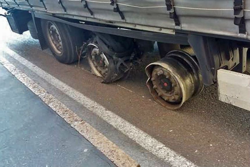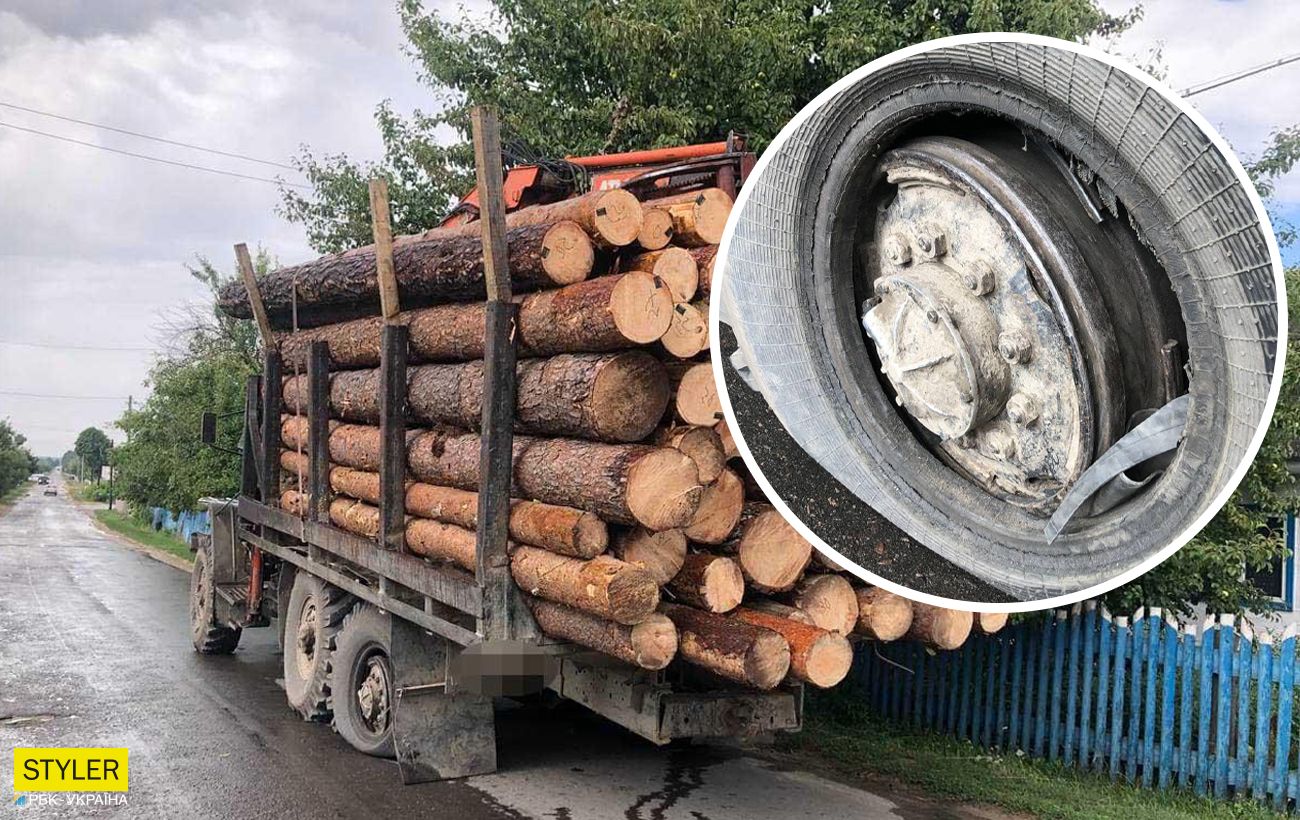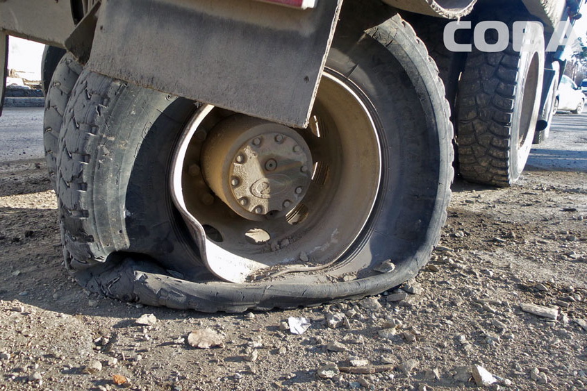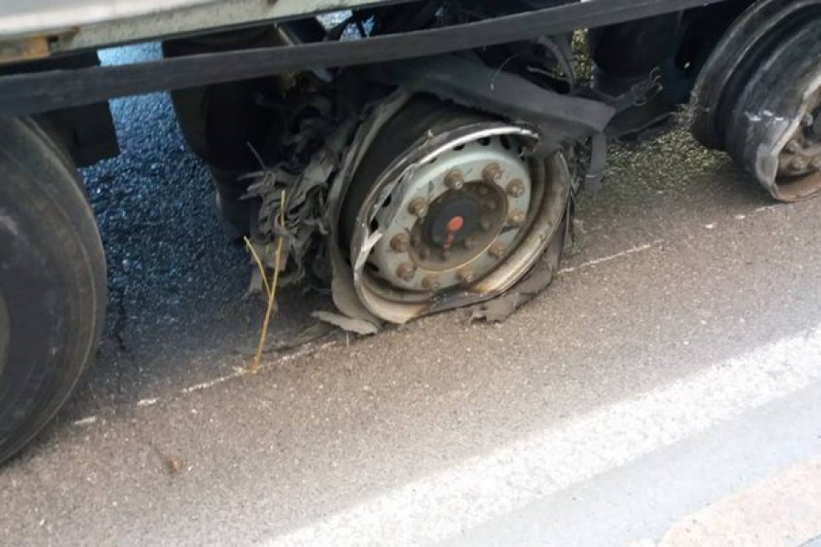 Взорвалось колесо на фуре