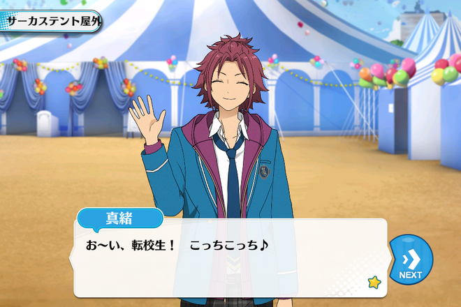 Макото: Сегодня наконец-то день цирка, ещё и погода отличная! Фуфуфу, встретиться с переведённой ученицей в не учебный день, словно глоток свежего воздуха~♪
