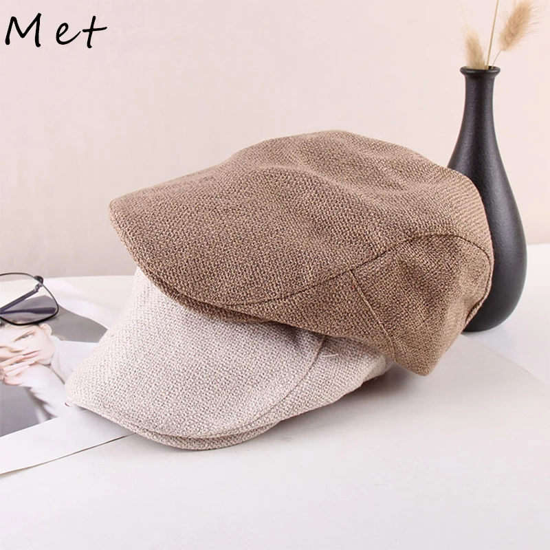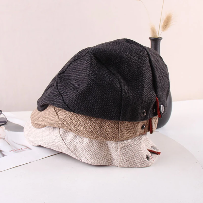 "W05 Men's Hats Berets Spring And Autumn Korean Version Of The Trendy Men's British Retro Linen Duck Tongue Beret Forward Hat" * Buy Now Just For 11$