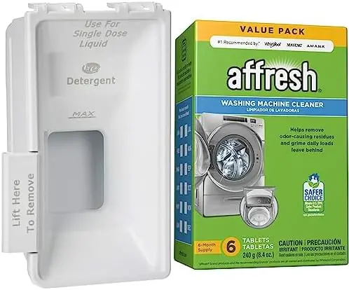"W10340677A Dispenser Cup & Affresh Washing Machine Cleaner, Cleans Front Load and Top Load Washers, Including HE, 6 Tablets" * Buy Now With Free Shipping Just For $56