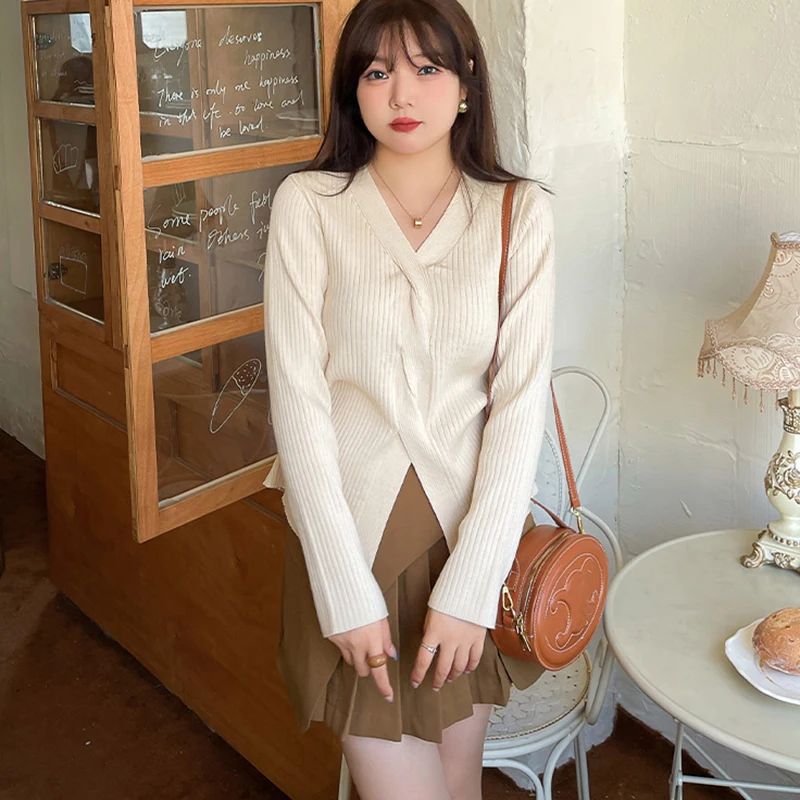 «WAYOFLOVE High-Quality Design Knit Sweaters Women Solid V Neck Pullover Tops Autumn Winter Sweater Women Loose Pull Oversize 3XL» по лучшей цене на рынке! Всего за 24$ (2280рублей)