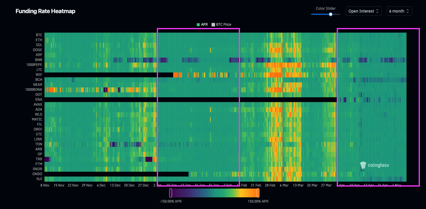 Besides bitcoin, we experienced a phase of very low or even negative fundings in altcoins as well, for a period almost as long as January: